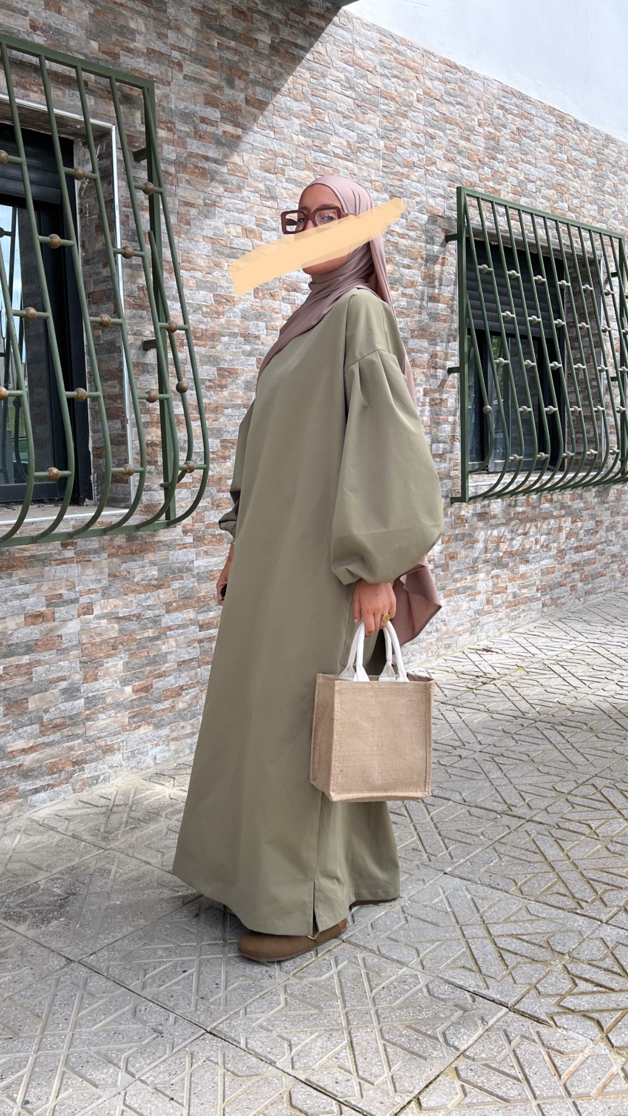 Abaya Chemise en Toile de Coton – Kaki & Beige