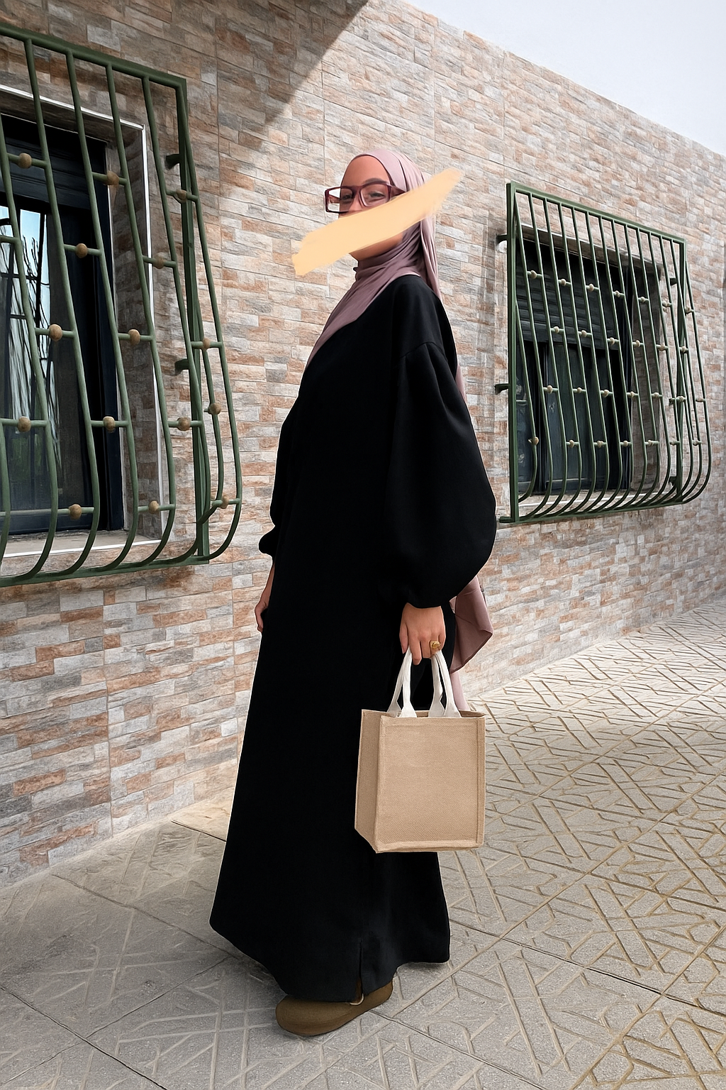 Élégance et confort se rencontrent dans cette abaya en toile de coton, pensée pour sublimer vos tenues du quotidien comme vos sorties spéciales.