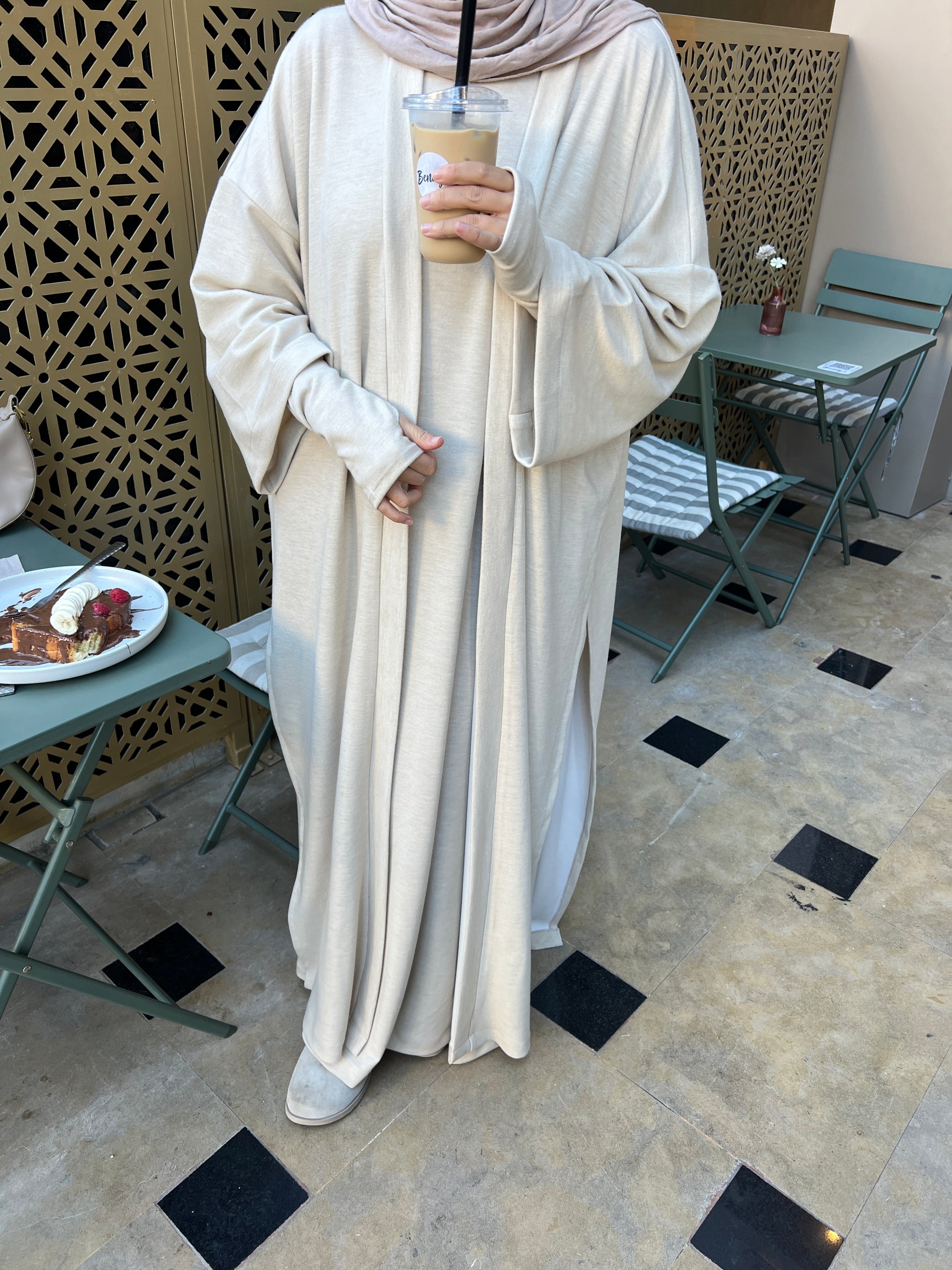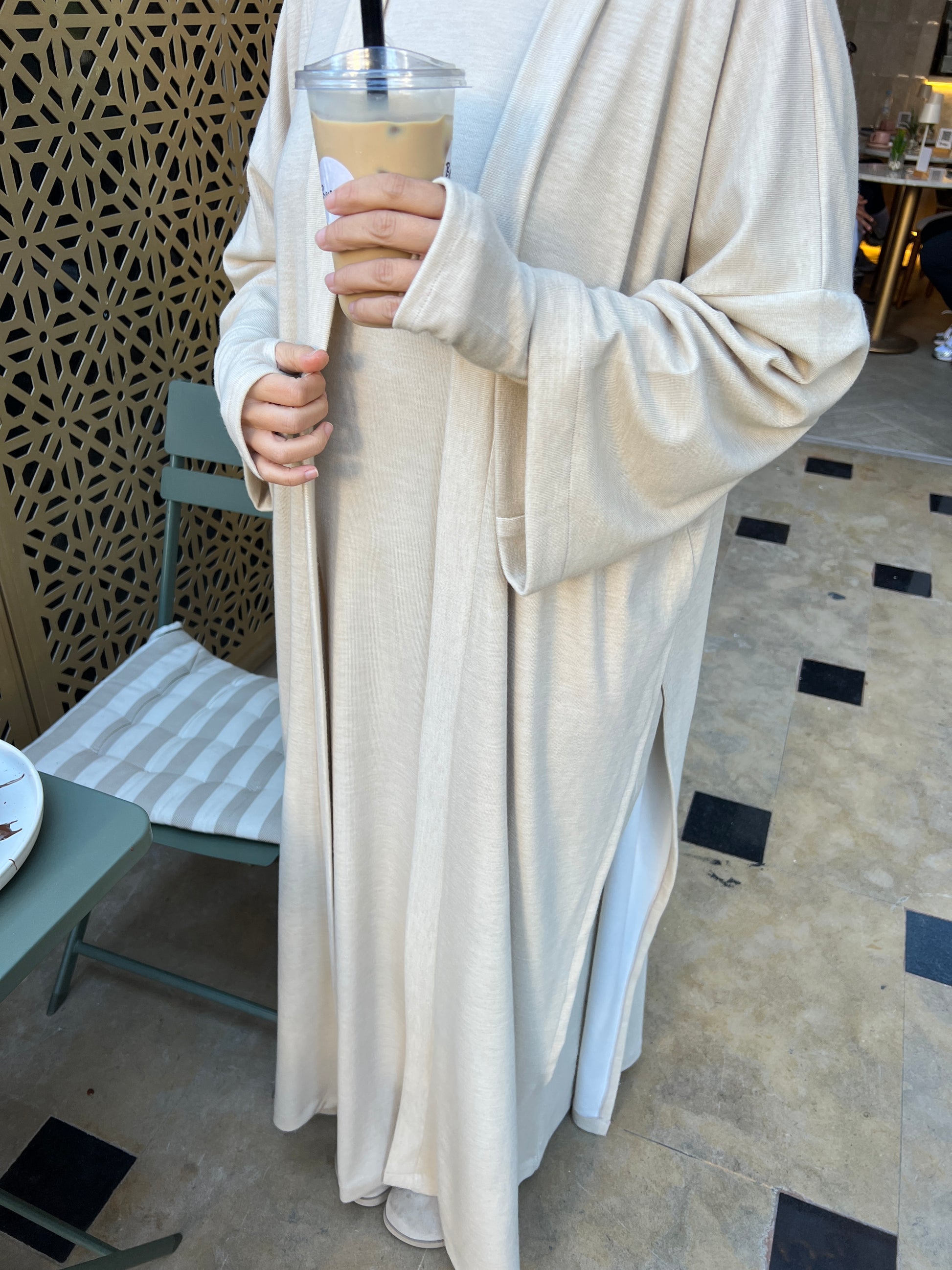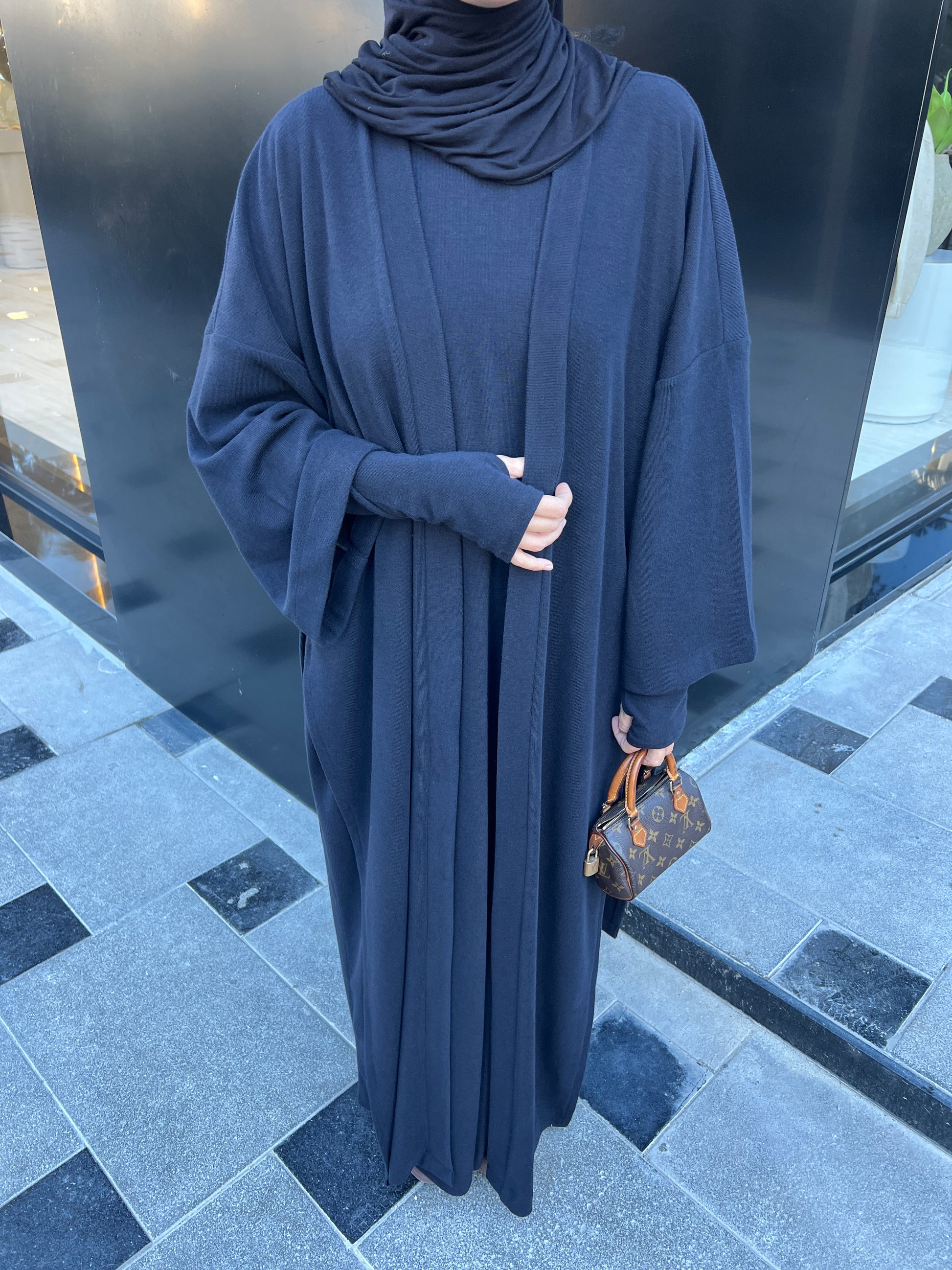 Abaya mitaines avec son kimono fendu .