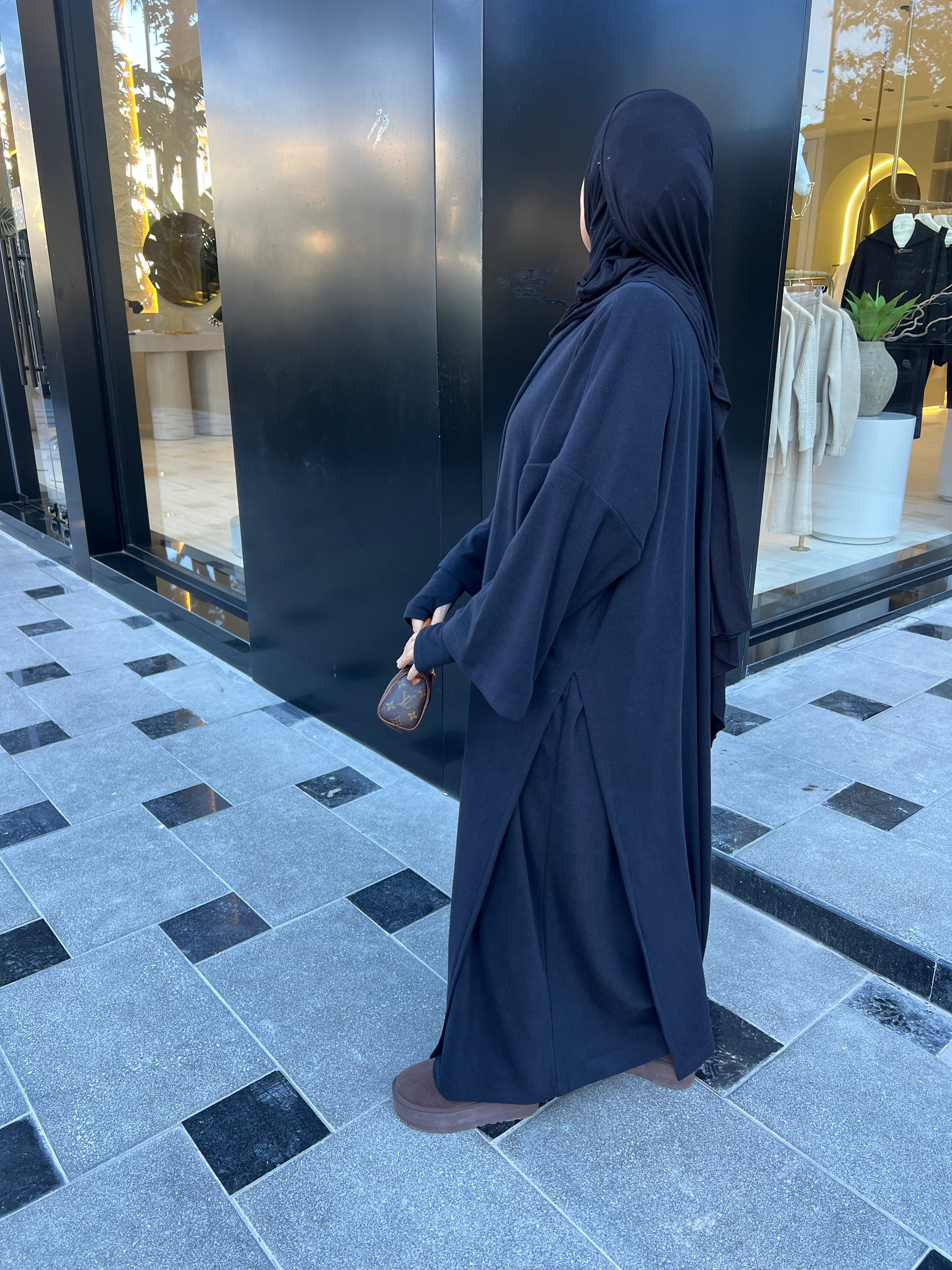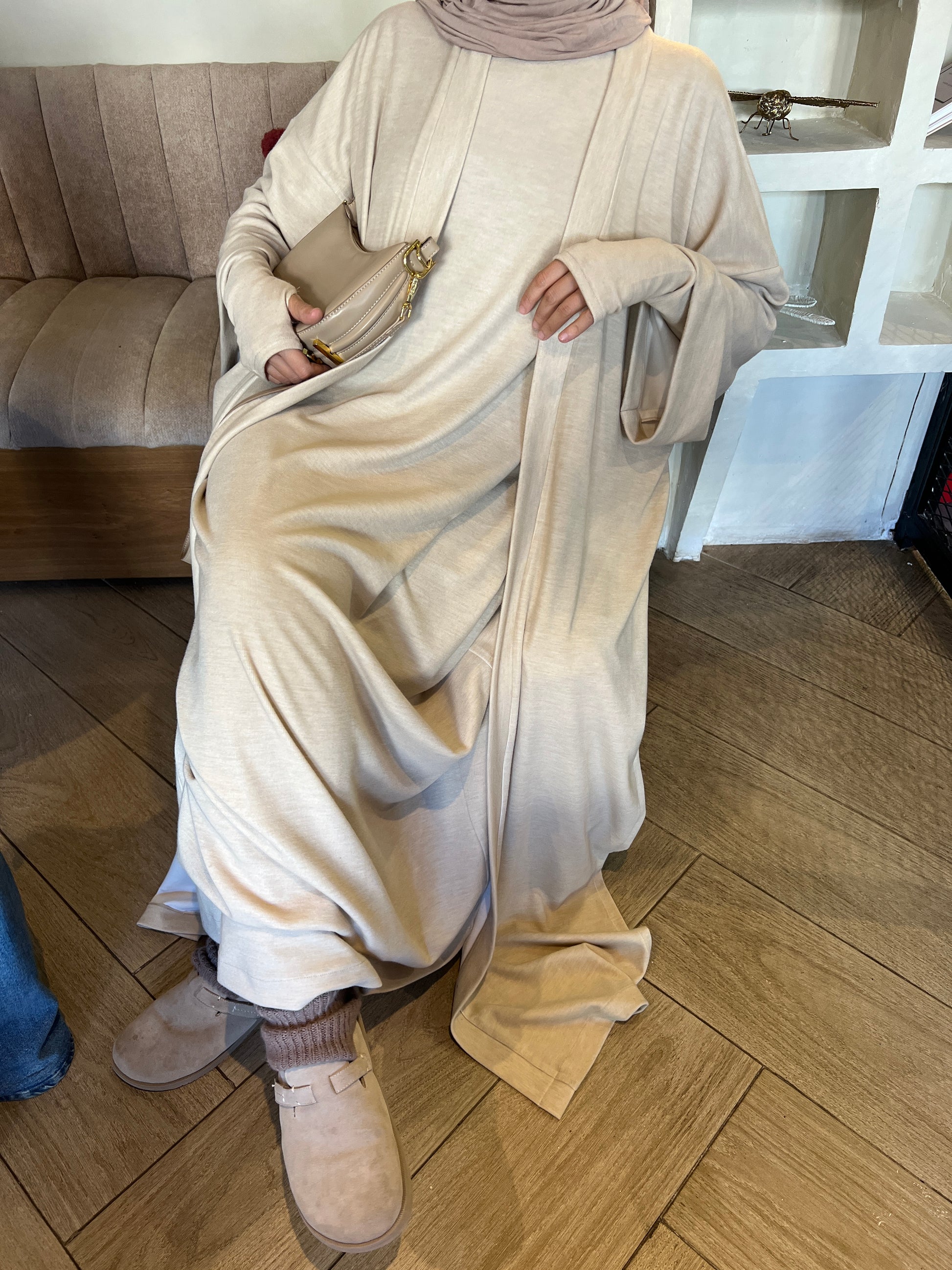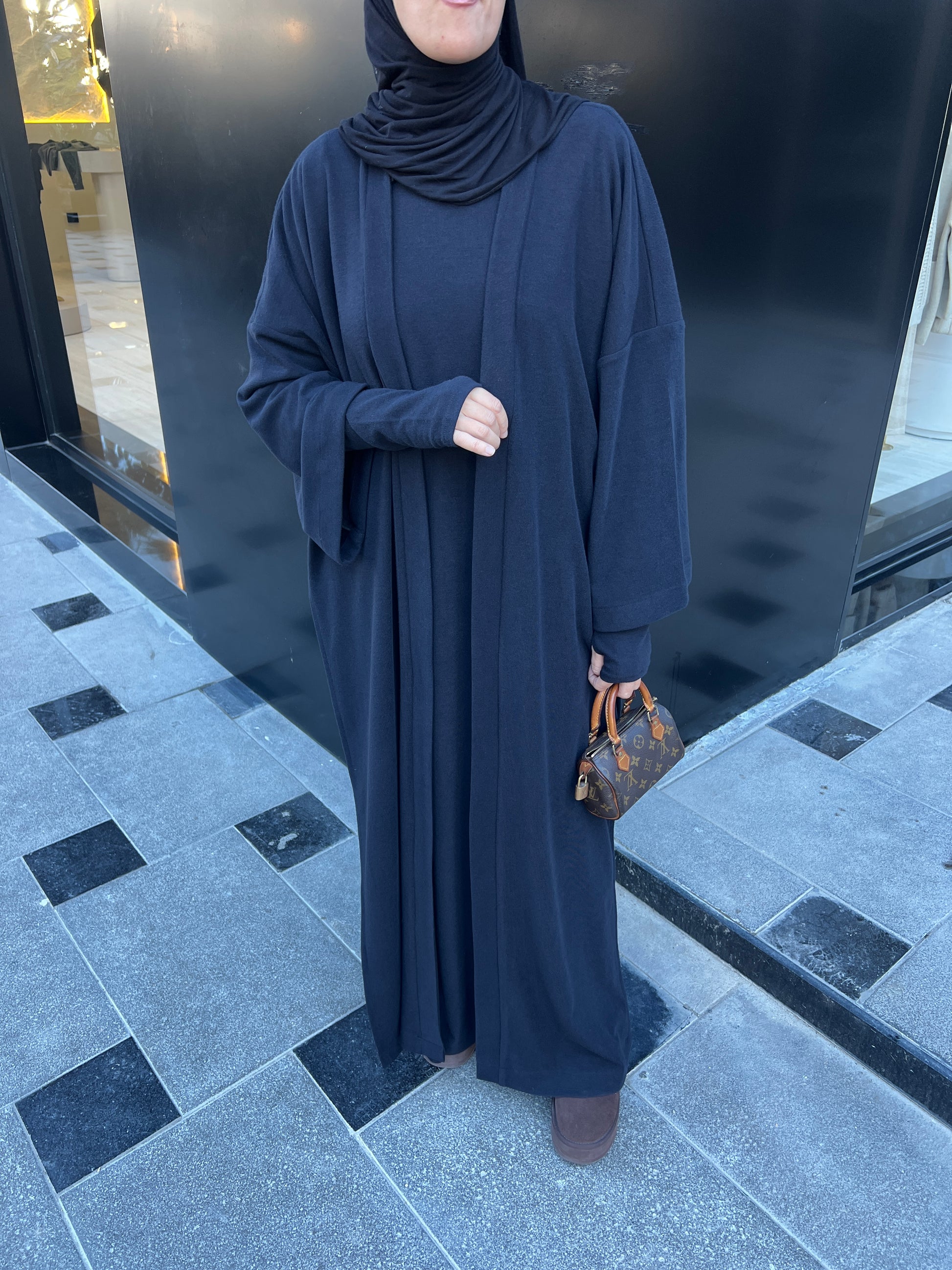 Abaya mitaines avec son kimono fendu .